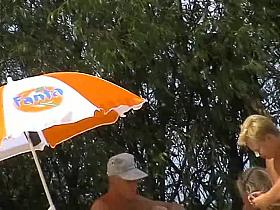 Busty sexy chicks group on nudist beach