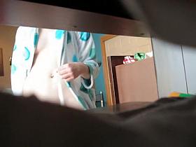 Voyeur cam in dressing room spies gal topless and pantieless