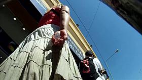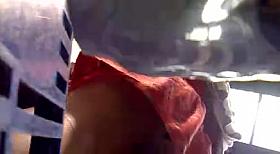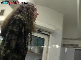 This hot babe obviously forgot she wasn't wearing panties under her summer skirt and she sat down, not knowing that a nosy voyeur was already filming her. She finally spread her legs a little bit and he got a great view of that tiny pussy with such fine pussy lips.
