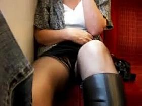 Wind Upskirt a Woman in Train. Wind zeigt Frau unterm Rock.