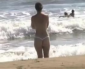 Horny slut eating cock at nude beach