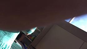 Hot legged fox is unaware of the upskirt voyeur film shooting