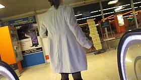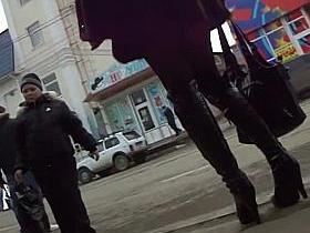 Slender sexy legs in hot stockings in the upskirt voyeur video