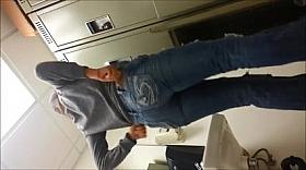 A gorgeous fresh lady shows her sporty body to changing room voyeur cam