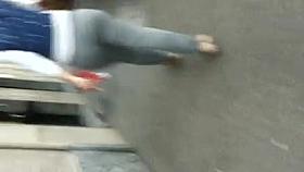Hot slut in miniskirt caught in street candid video
