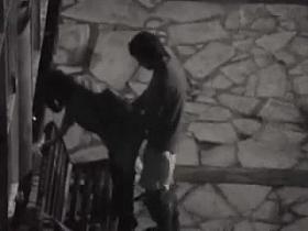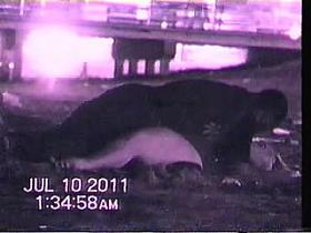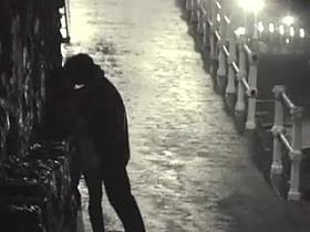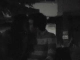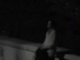 Voyeur films lovebirds having sex at night outside in clothing.