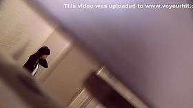 Curvatious hottie is completely relaxed, while peeing, but a naughty bloke is nearby, filming a nasty voyeur video.