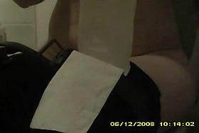 Hairy pussy peeped on as she wipes off