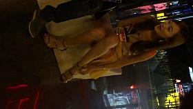 Teeny legs brunette hottie underskirt voyeur video on the street