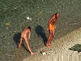 Guy strokes cock next to woman