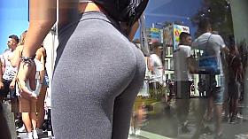 Blonde girl with sexy ass filmed by pervy guy in outdoor