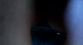 Naughty hunter peeked up the jeans skirt of the pretty amateur bimbo and found out she was wearing a cute pink panty thong that could hardly cover her treasures from us.