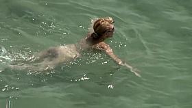 Nudist pussy eating in the water