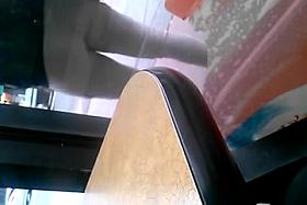 Amateur wife with big booty pisses on her chair