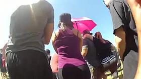 Round tan arse on the beach