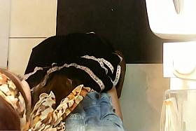 Blonde amateur in short dress caught cleaning pussy upskirt