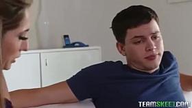 My stepsis blows me while our MILF stepmom spies on us