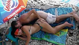Older Asian bitch massages a guy's hairy legs admiring his big cock