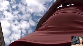 Outstanding upskirt porno by amateur dark-haired peach