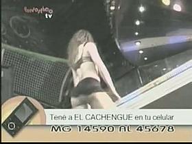 A stupid yet sexy blonde whore poorly dances on a live television show