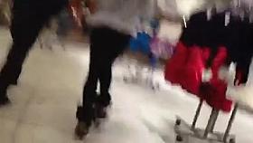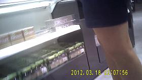 Store girl in shiny tan pantyhose and tight skirt