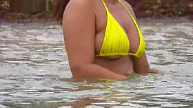 Boob sharks are being surprised by the size of her rack