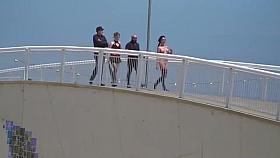 She looks around to make sure she’s alone before pulling down her denim shorts, squatting, and taking a piss on the ground. Her pierced and shaved pussy looks so good.