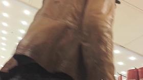 Upskirted Her -Tiny Denim Miniskirt, Red Thong