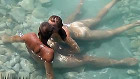 Nudist couples fucking in rocky beach