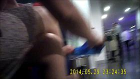 Dude touches ebony woman's ass