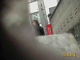 Asian lifts her skirt and take a pee