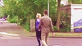 Blond cfnm sluts suck guys hard dick as a team on sofa