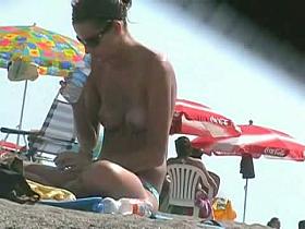 Big topless boobs on the beach