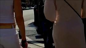 Curly hair, small tits, and long legs are lovely on this black girl as she walks outdoors in high heels and finds a spot in the shade to take a piss. You get a close up of her pussy as she goes and it’s sexy.