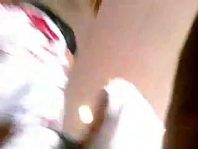 Asian sitting with her legs stretched up the skirt ABB8