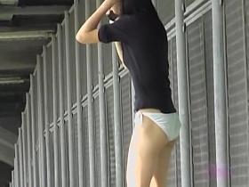 Hot Asian got skirt sharked on the pedestrian bridge