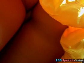 Marvelous upskirt booty in purple glow