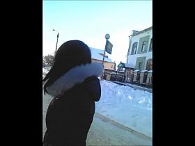 Street crossing sharking scene of some chunky oriental pretty bimbo