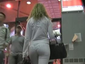 There are beauties shopping in the store and it turns him on so the guy pulls out his dick and films their asses. Candid booties look good in the video!