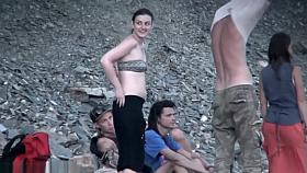 Beautiful young girls spied by outdoor voyeur when they having Outdoor bath surrounded by nature