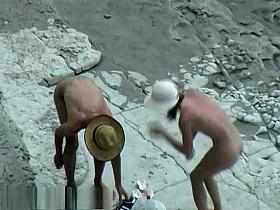 Nude beach voyeur scenes with amateurs bathing in the sea