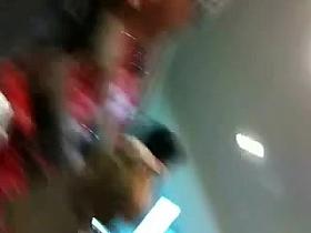 Chubby exhibitionist in short jeans skirt bends over and lifts her skirt to show her fat pussy.