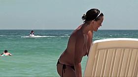 Black hair topless woman in the nude beach candid video