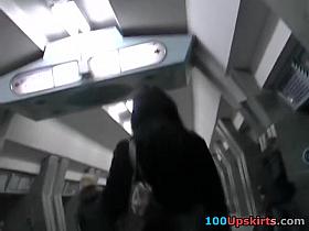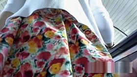Blonde bitch was wearing a g-string when an upskirting voyeur dude filmed her nice slim legs and skinny buttocks.
