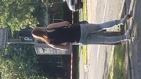 Bike parking sharking scene of some really confused sexy brown-haired chick