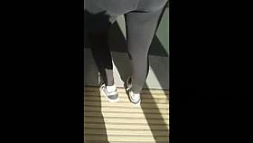 If you think she got a pretty face, wait until she turns around in this voyeur video. Her bubble butt is nearly making her white tights explode. I'm pretty sure every man that comes to this gas station is fantasizing about filling her up like she fills the gas tanks.