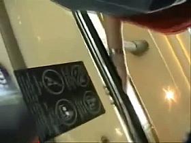 G-string wearing bitch filmed in upskirt video clip