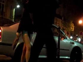 Lesbian babes licking on the bonnet of fake taxi