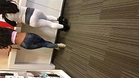 brunette girl in black legging nice ass while she checks her smartphone.