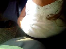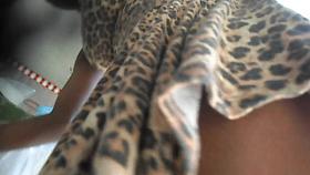 G-string of a brunette seen in voyeur upskirt mov